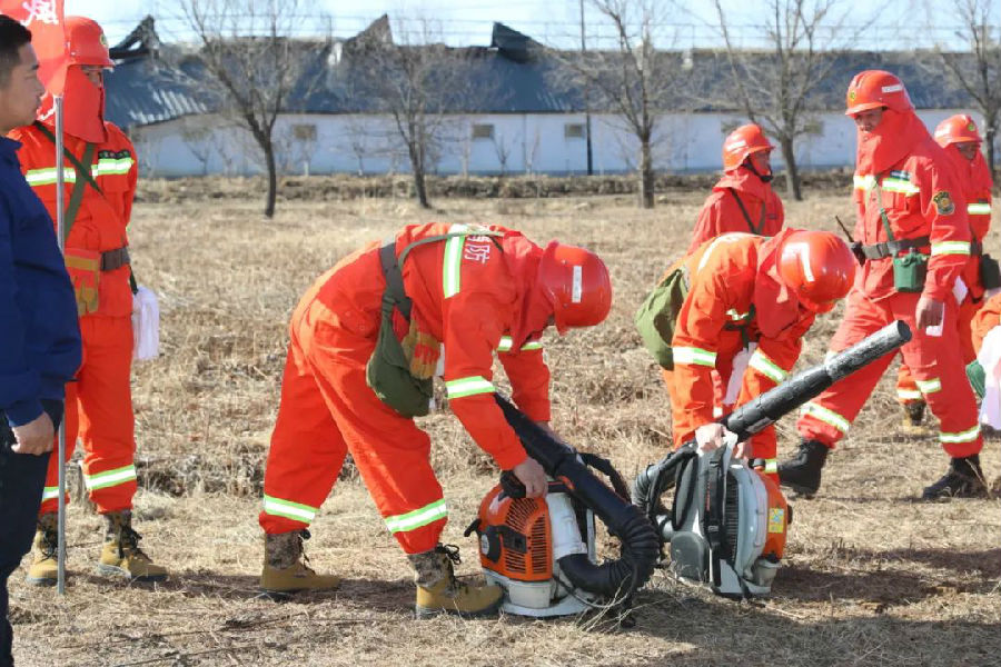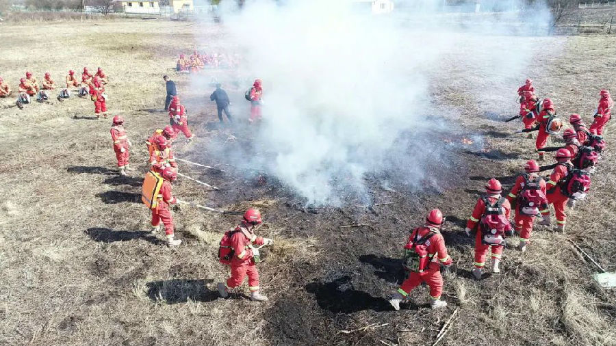 在聯合指揮部的統一指揮下,各隊伍迅速進入火場,分別以“兩翼對進、鉗形夾擊”滅火戰術及“四面出擊、全面合圍”滅火戰術并采取穿插遞進等方式進行撲火演練。由風力滅火機、水槍、二號工具開辟安全區域,突破火線進入火燒跡地避險。實戰演練中,還進行了消防水車滅火演練。