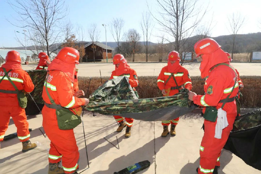 演練開始前,參演四方精心制定了跨區域聯合作戰火災撲救實戰演練方案,成立了指揮部,模擬大石頭亞光湖國家濕地公園附近突發森林火情。接到火情報警后,各單位迅速集結,按時抵達指定火場,并搭建單兵作戰帳篷。指揮車、運兵車、機具運輸車、消防水車有序排列,帶隊指揮員依次向撲火前指總指揮報告。